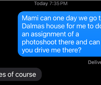 For first image, I had to first make sure it was ok to do the photoshoot at her house. Here I'm messaging her asking if one day on a weekend I can come over to do my photoshoot. In response, she said yes.